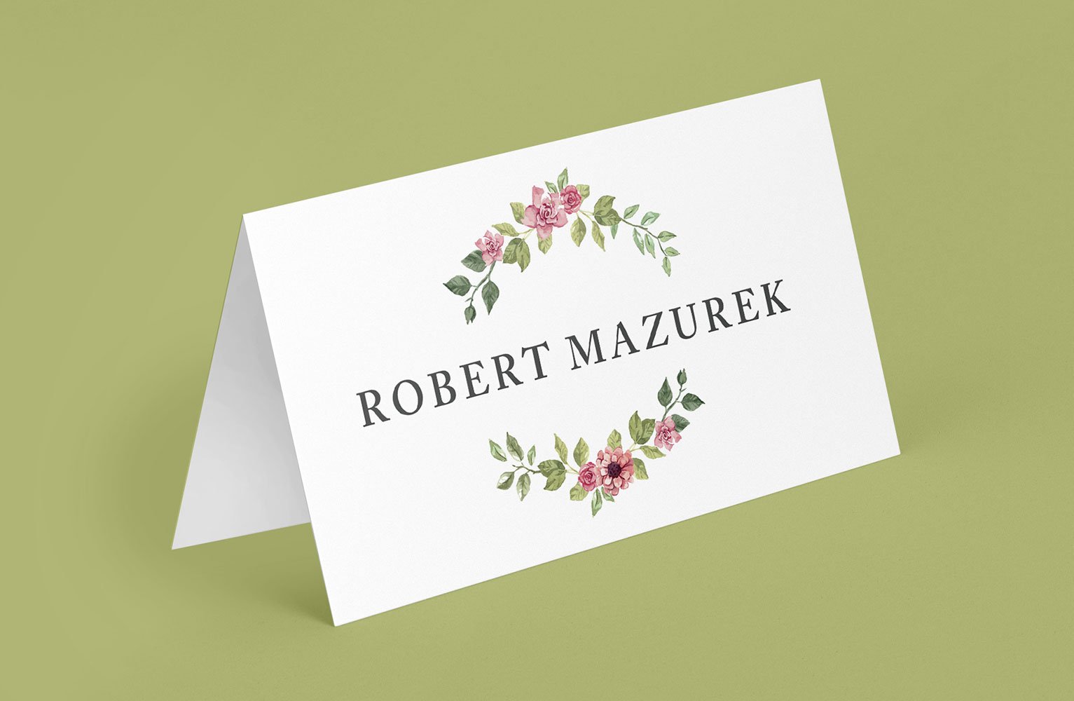 Jeśli lubisz minimalizm, wybierz uderzający, ale niezwykle prosty i czytelny projekt. Dojrzały krój pisma oraz delikatne, ręcznie pisane inicjały, nadają bardzo nowoczesny wygląd. Co więcej, możesz dowolnie operować kolorami tekstu.